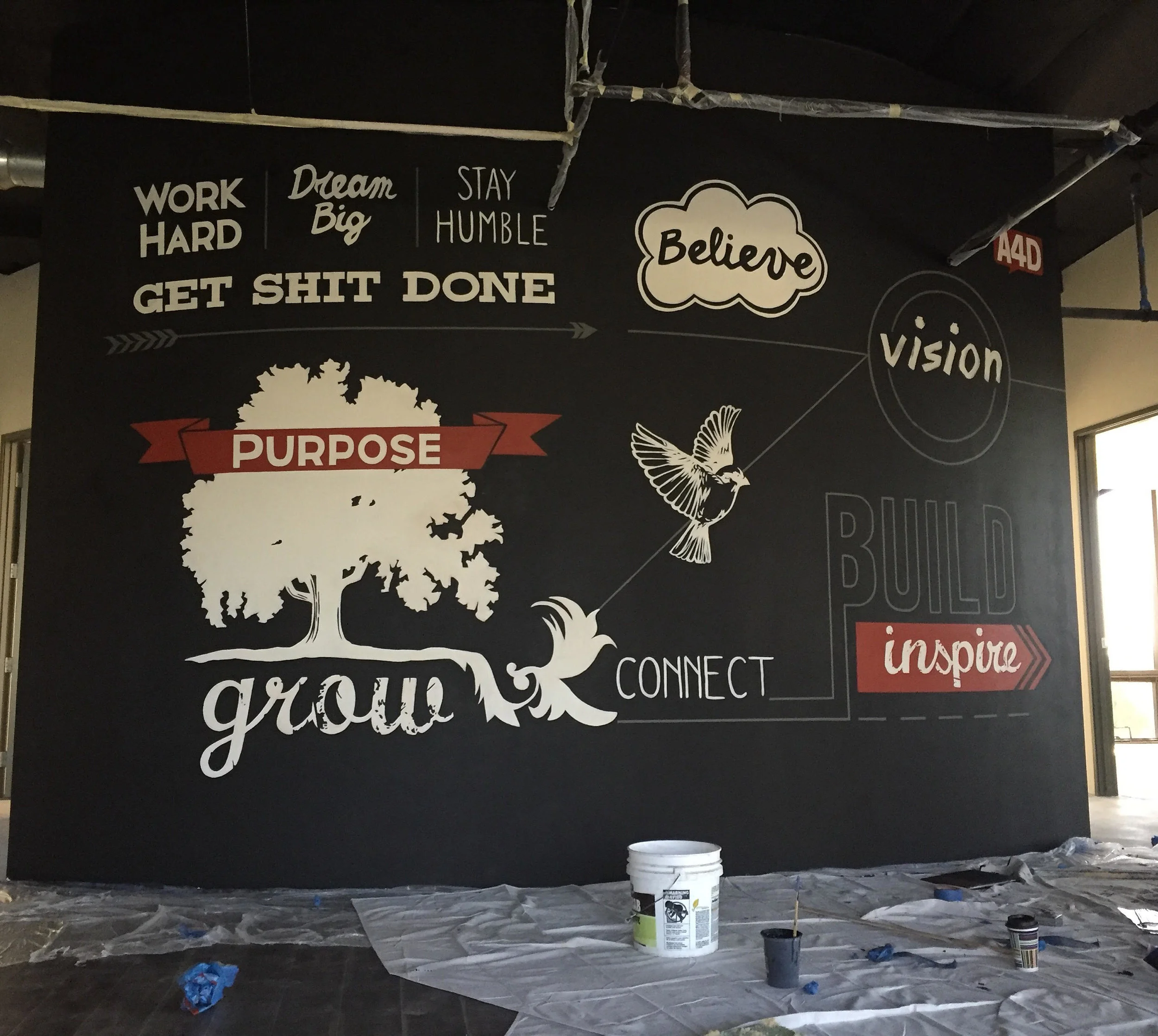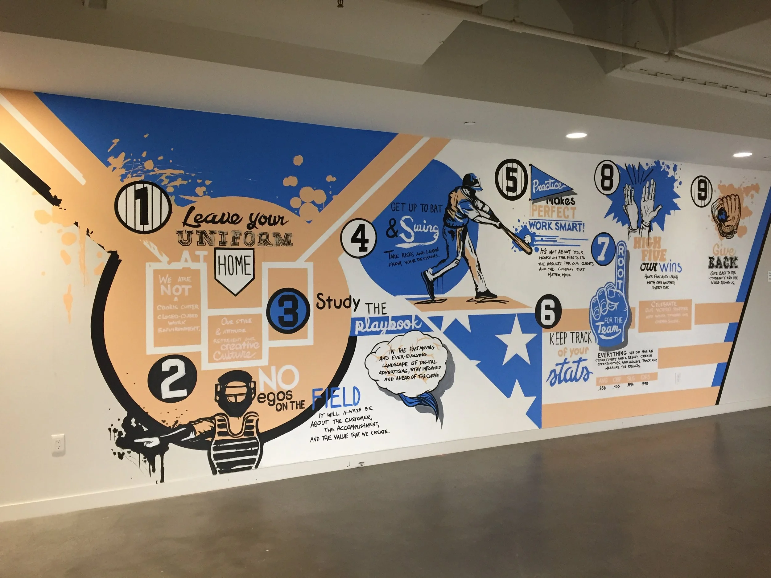 This album is a look at some of our favorite murals over the years. We have completed projects for a wide array of clients, in a variety of styles and on all types of surfaces. Interior, exterior, large or small, we are confident that we can design and complete a mural that fits exactly what you're looking for. Not only that, but we will get your project done in a timely fashion and as a licensed painting contractor we use the correct materials and techniques to ensure your colors stay vibrant and your message lasts.